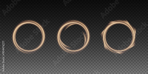 Festive sparkling frame, circle, ring png. Festive circle, ring, frame, for cards, invitations, banners, adverts. Neon frame, set of geometric frames. Vector png background with gold glowing lines.