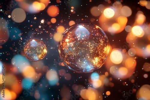 Festive Sparkling Glass Orbs Abstract Background Bokeh Lights