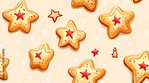 Festive Star Shaped Cookies with Red Glaze and White Snowflakes