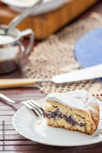Fetta di torta pastcasalinga farcita con marmellata su un piatto
