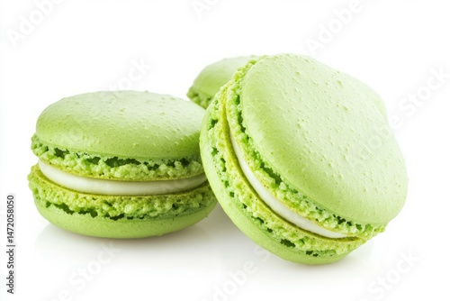 Few green macarons on white background. AI image