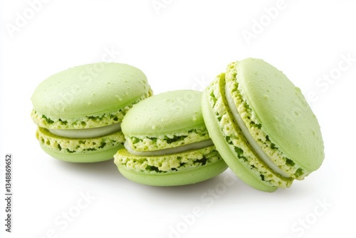 Few green macarons on white background. Neural network AI generated