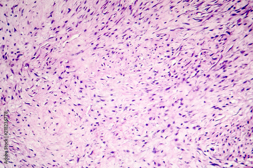 Fibroma, a benign tumour of fibrous tissue, light micrograph, photo under microscope