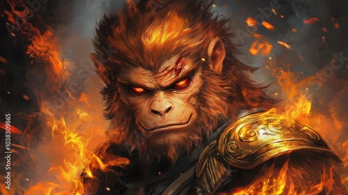 Fierce Portrait of the Monkey King with Red Eyes
