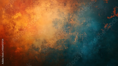 Fiery Abstract Digital Painting: Warmly Hues Swirling in Teal Texture. AI Generated