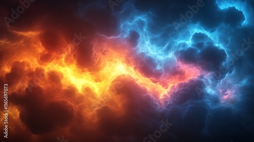 Fiery and Icy Clouds Clashing in a Dramatic Sky
