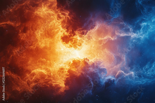 Fiery and icy cosmic clouds collide in a vibrant nebula, showcasing a spectacular celestial event.