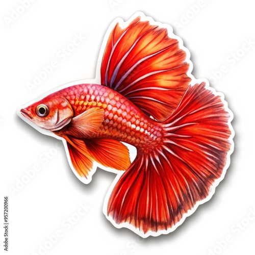 Fiery Betta Fish Watercolor Illustration, Watercolor, Illustration, Fish
