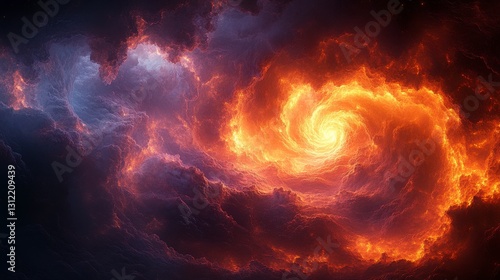 Fiery Cosmic Spiral Glowing Nebula in Radiant Purple and Yellow Hues.Colorful Nebula in Radiant Purple and Yellow Hues.Color palette is purple and yellow.Radiant Nebula in Purple and Yellow.Swirling