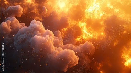 Fiery Eruption of Cloud Plumes and Intense Heat Creating Abstract Background Texture