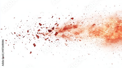 Fiery explosion debris against white background