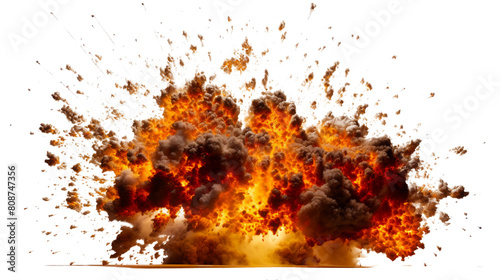 Fiery Explosion with Smoke and Debris on transparent