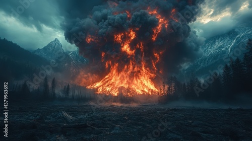 Fiery Forest Inferno Dramatic Wildfire Engulfs Mountain Landscape