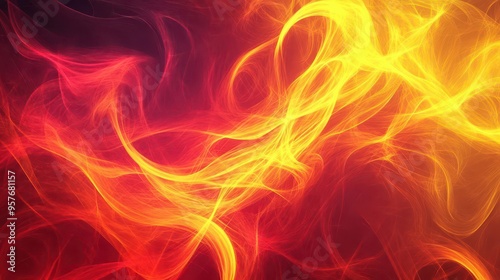 Fiery gradient with fluid, curling tendrils of red and yellow, Abstract background, Dynamic and intense
