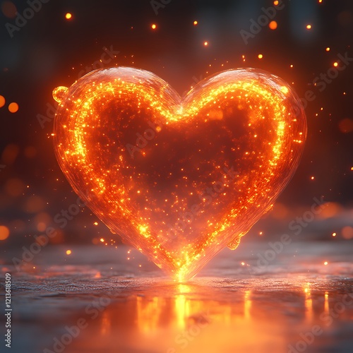Fiery heart shape glowing with sparks.