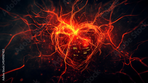 Fiery Heart with Intricate Neural Patterns and Central Structure