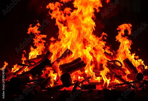 Fiery inferno engulfing various objects, creating a dramatic scene, hot, plastic