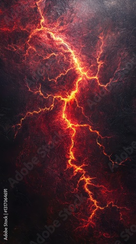 Fiery Lightning Bolt in a Dark Abstract Background with Red Sparks