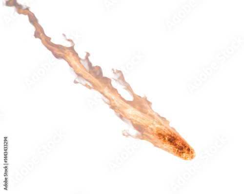 Fiery Meteor Plunging Through the Cosmos, A Spectacular Display of Celestial Fire with a Dynamic Flame Tail Streak on an Isolated Plain Backdrop