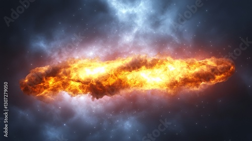 Fiery Nebula in Dark Space Cosmic Cloud Formation with Glowing Stars