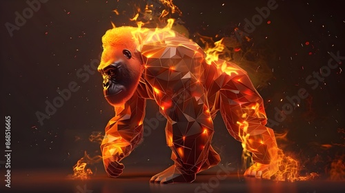 Fiery Polygonal Gorilla with Geometric Aura Abstract 3D Digital Artwork