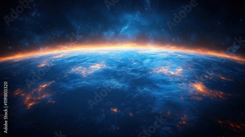 Fiery sunrise, Earth, space, nebula, global warming, environmental, science fiction, cosmic artwork