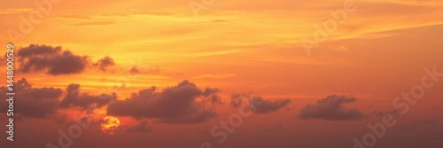Fiery Sunset Panorama: Clouds and Golden Hues