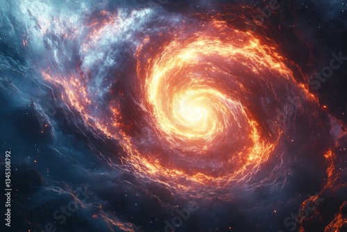Fiery swirl in cosmic nebula, starscape background, fantasy backdrop