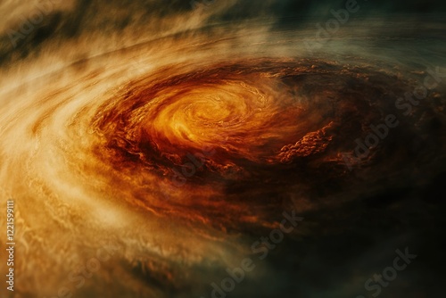 Fiery swirling vortex of clouds, resembling a cosmic inferno or a celestial storm.