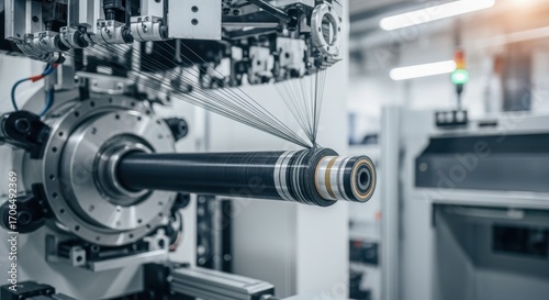 Filament winding machine assembling multilayered composite liners designed to withstand thermal stresses in cryogenic hydrogen fuel containment systems.