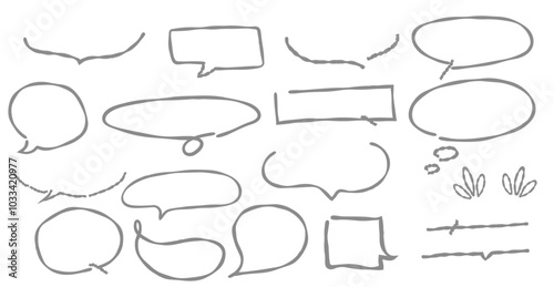 手描きの線画吹き出し あしらいのベクターイラストセット