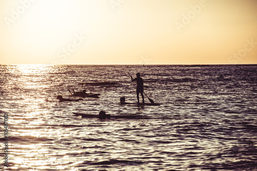夕日とサーファーのシルエット