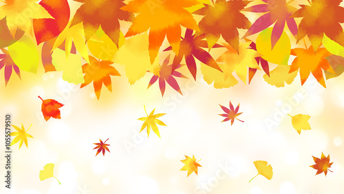 オレンジ色キラキラ背景と紅葉の背景イラスト素材