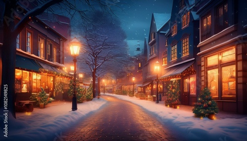 따뜻한 조명이 비치는 겨울 도시의 거리
