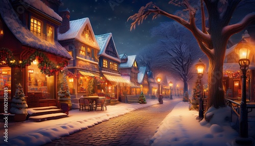 따뜻한 조명이 비치는 겨울 도시의 거리