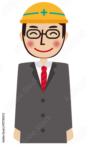 安全ヘルメットのグレーのスーツの男性 上半身 笑顔