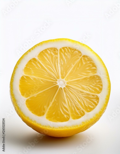 一つの輪切りのレモンと白い背景
