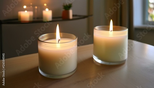 두 개의 향초가 함께 타오르는 조용한 방 안. 따뜻한 촛불빛이 부드럽게 퍼진다
