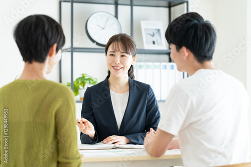 若い夫婦に営業するビジネスウーマン