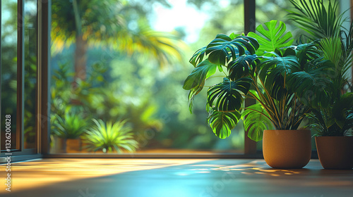 室内の観葉植物と窓辺の自然光が作るリラックス空間