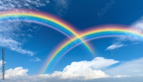 파란 하늘 위에서 두 개의 무지개가 교차하며 영원한 사랑을 상징