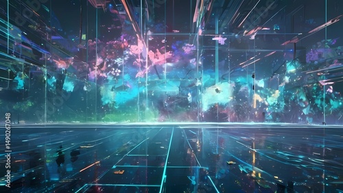 ゲーム背景 未来型デジタルステージ舞台歌番組風背景
