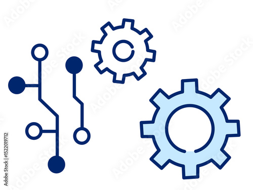 おしゃれなフラットデザインの歯車と電気回路/イラスト素材