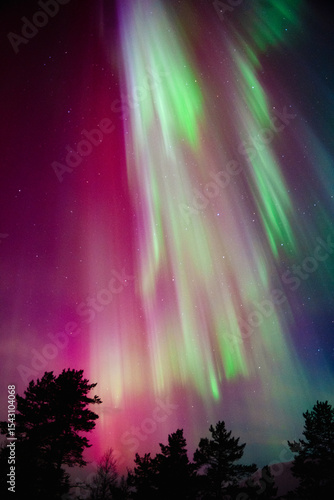 ノルウェー・トロムソの夜空に輝く幻想的なオーロラ