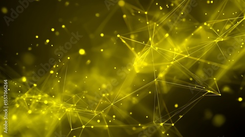 黄色い光線と粒子が交錯するデジタルネットワークアート