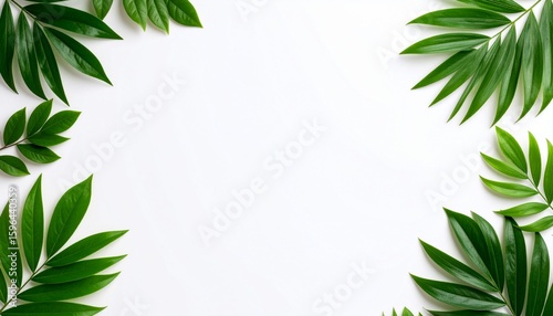 白色無地の背景画像 観葉植物の葉 ポストカード風