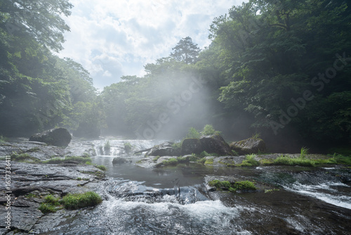 霧が立ち上る雨上がりの広河原