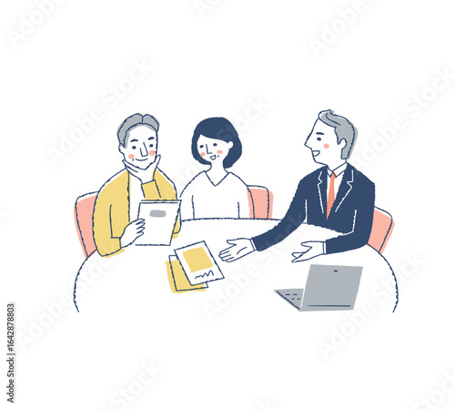 パンフレットを見ながら相談をする夫婦と接客をする担当者