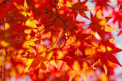 鮮やかな赤色に染まる秋の紅葉の風景