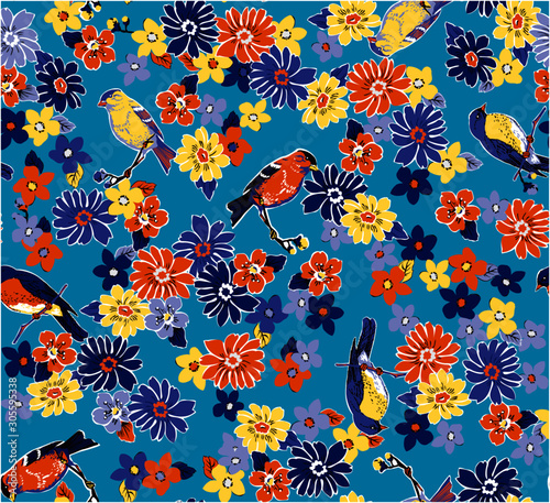 花と小鳥柄